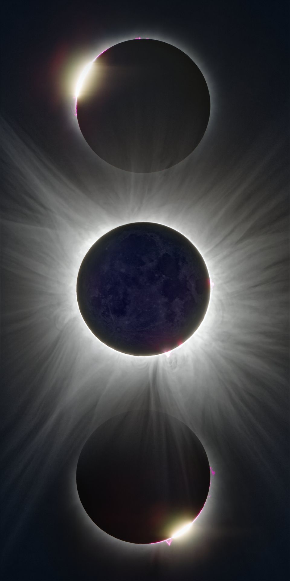 This print immortalizes the 2024 total solar eclipse as seen from Hot Springs, Arkansas. It is a long exposure composite that highlights the intricate beauty of the solar corona and reveals an extraordinary phenomenon called Earthshine — the moon’s surface illuminated by light reflecting off the Earth, only visible with a camera.